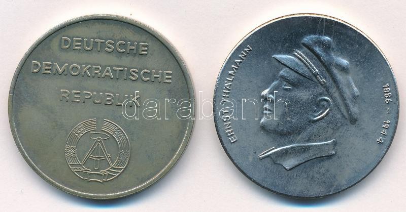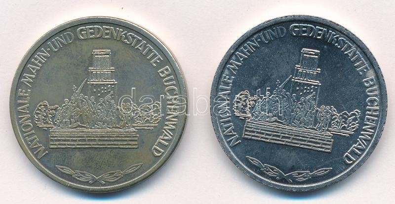 NDK ~1970. "Nemzeti Emlékhely Buchenwald / Német Demokratikus Köztársaság" kétoldalas fém emlékérem (35mm) + "Nemzeti Emlékhely Buchenwald / Ernst Thälmann" kétoldalas fém emlékérem (35mm) T:2
