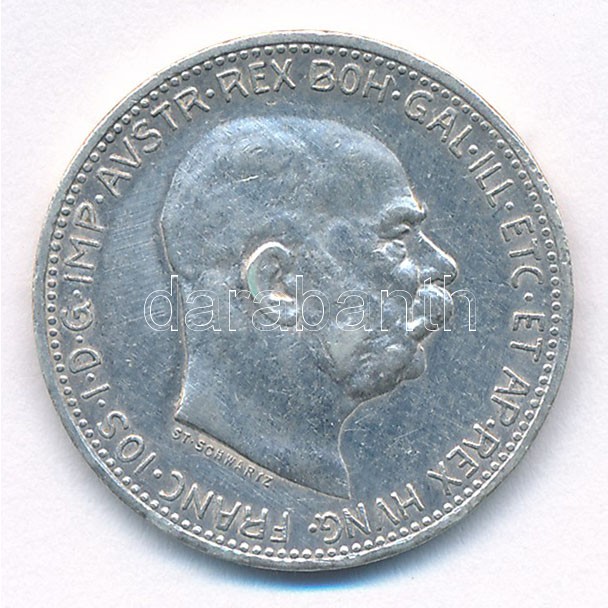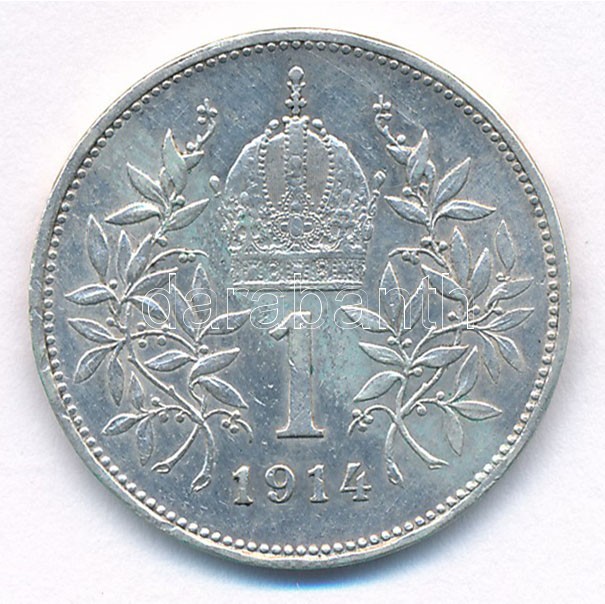 https://www.darabanth.com/en/410-Online-auction/410.0/Numismatics/Worldwide-silver-and-metal-coins~2000015/Ausztria-1914-1K-Ag-Ferenc-Jozsef-T2-Austria-1914-Corona-Ag-Franz-Joseph-CXF-Krause-KM23-282~II2545624