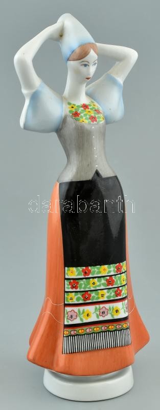 Aquincum matyó menyecske. Kézzel festett, jelzett, kopásnyomokkal, m:26 cm
