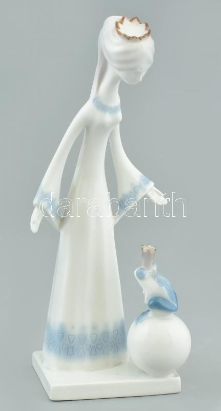 Description: Aquincumi béka király porcelán, máz alatti aquazur festéssel. Tervezte: Ősz Szabó Antónia, 1972. Kopásnyomokkal, Alján kék aquincumi jelzet és "Hand painted" felirat. m: 21,5cm