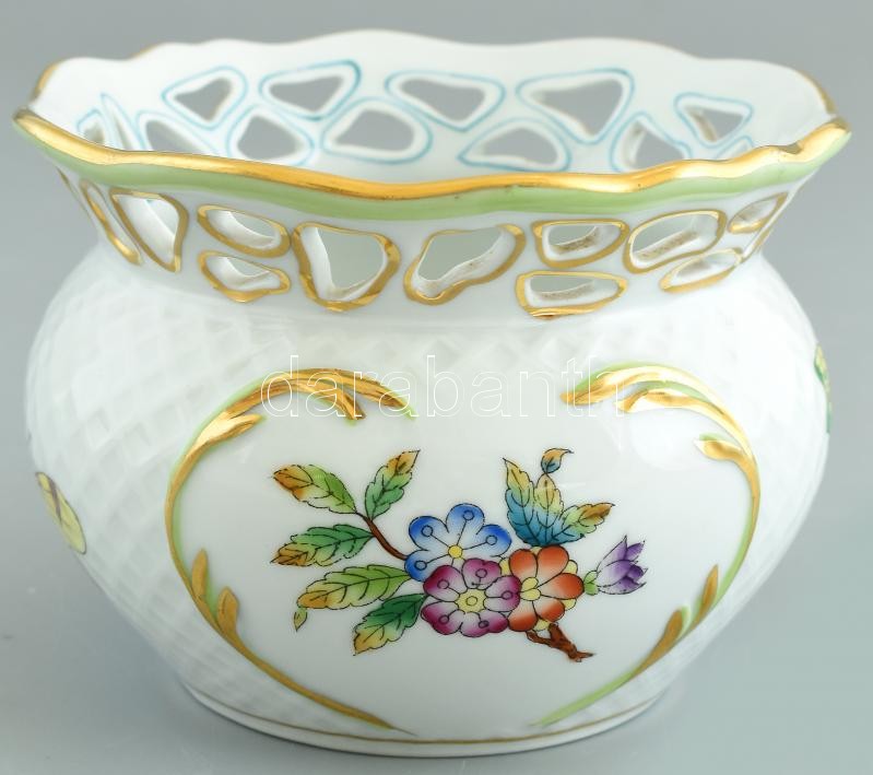 Herendi Viktória mintás áttört porcelán kaspó, kézzel festett, jelzett...