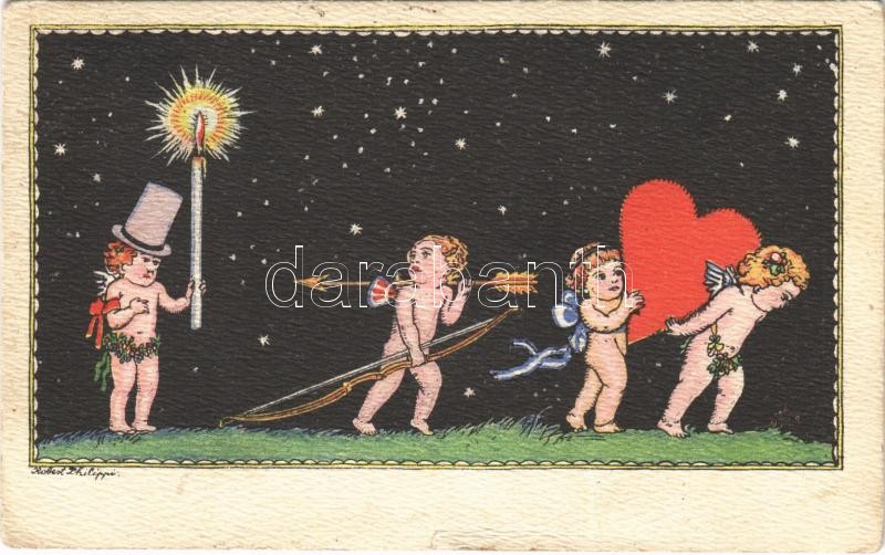 1923 Romantic art postcard, cupid. B.K.W.I. 245-1. s: Robert Philippi (kis szakadás / small tear)