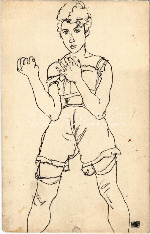 Lady in underwear. Zeichnung, Lichtdruck v. Max Jaffé. Verlag der Buchhandlung Richard Lányi s: Egon Schiele (tears)
