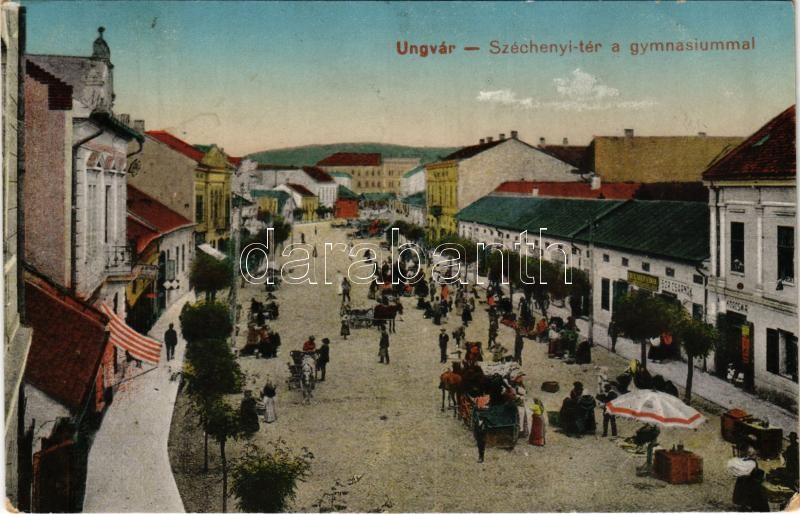 1920 Ungvár, Uzshorod, Uzhhorod, Uzhorod; Széchenyi tér, gimnázium, piac, sörcsarnok és korcsma, üzlet / square, grammar school, market, beer hall, shops