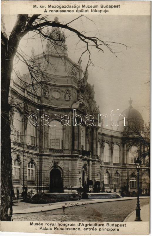 https://www.darabanth.com/en/410-Online-auction/410.0/Postcards/Hungary~1500005/1922-Budapest-XIV-Varosliget-M-kir-Mezogazdasagi-Muzeum-a-renaissance-epulet-fokapuja-I~II2546012