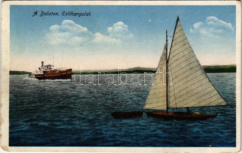 1928 Balaton, esti hangulat, gőzhajó, vitorlás (EM)