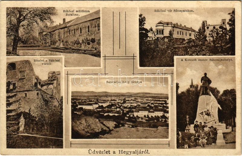 1931 Hegyalja, Kossuth szobor Sátoraljaújhelyen, Rákóczi vár Sárospatakon, Rákóczi szülőháza Borsiban (Borsa)