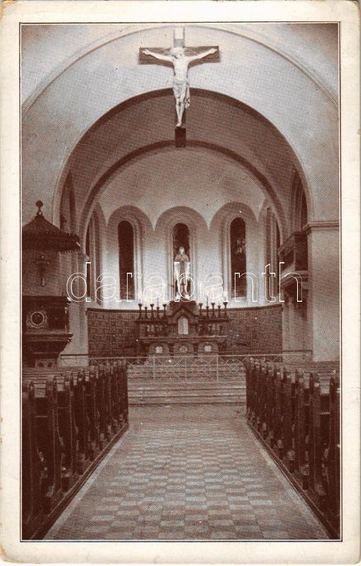 Budapest X. Kőbánya, MÁV (Magyar Királyi Államvasutak) Északi Főműhelyi lakótelep templomának hajója, belső (EK)