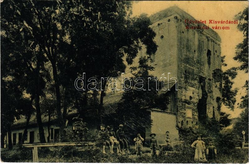 Kisvárda, várrom, gyerekek. Klein Gyula kiadása. W.L. (?) 2084 K. (Rb)