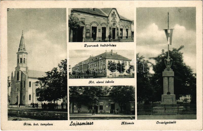 Lajosmizse, Római katolikus templom, Iparosok kultúrháza, Állami elemi iskola, Vasútállomás, Országzászló (EK)