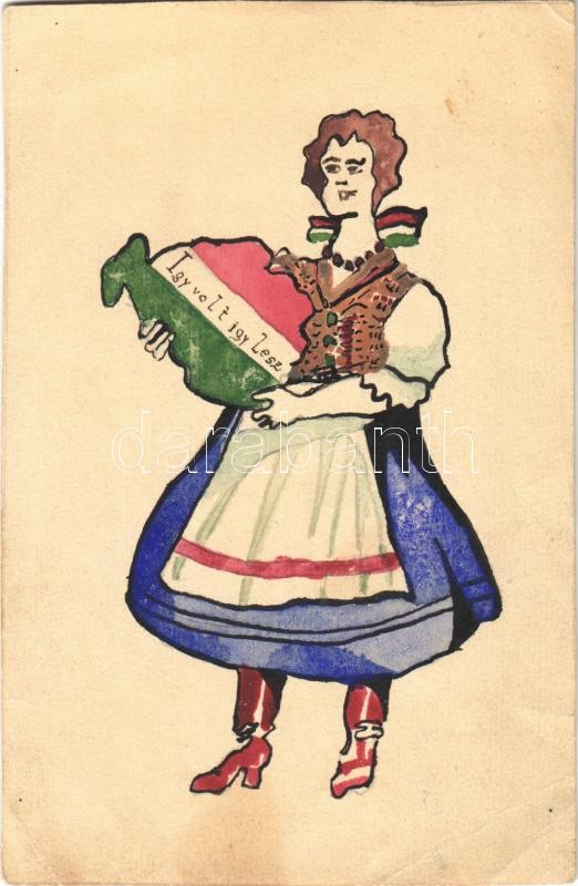 1922 Így volt, így lesz. Kézzel rajzolt irredenta művészlap / Hungaria...