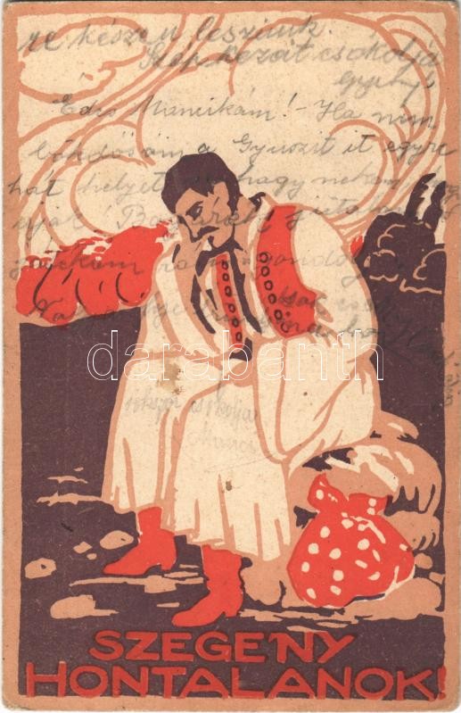 Description: 1923 Szegény hontalanok. Magyar Nemzeti Szövetség kiadása a megszállott területeken elbocsájtott tisztviselők javára. Kiadja a "Szózat" Magyarország Területi Épségének Védelmi Ligája napilapja. Besskó Garfikai Műintézete / Hungarian irredenta propaganda, Trianon (EK)