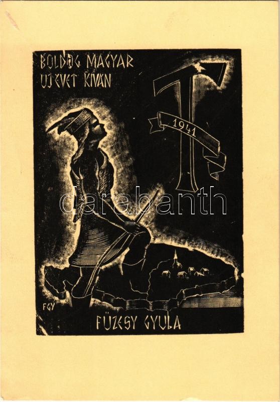 1941 Boldog Magyar Újévet Kíván Füzesy Gyula! Trianon / Hungarian irredenta propaganda (non PC) s: Füzesy (Füzessy) Gyula