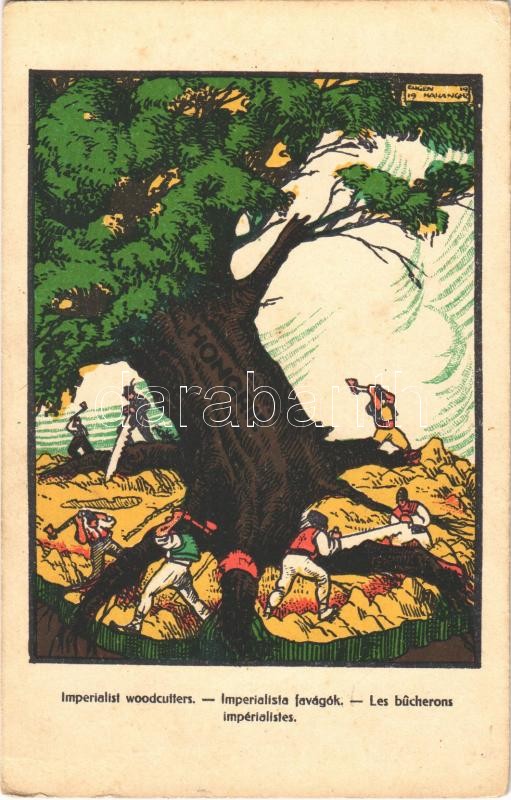 Hongire - Imperialista favágók / Imperialist woodcutters. Hungarian irredenta propaganda, Trianon s: Eugen Haranghy (EK)