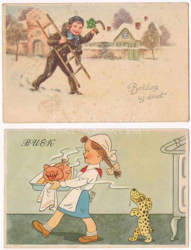 5 db RÉGI újévi üdvözlő képeslap / 5 pre-1950 New Year greeting postca...