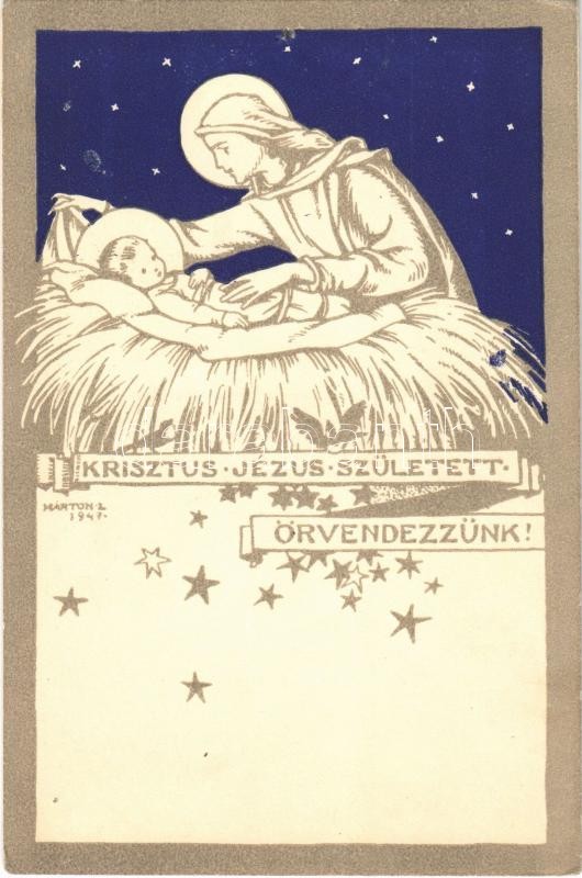 Krisztus Jézus született, örvendezzünk! Ferences Missziók Központja kiadása / Hungarian religious art postcard s: Márton L. (lyuk / pinhole)