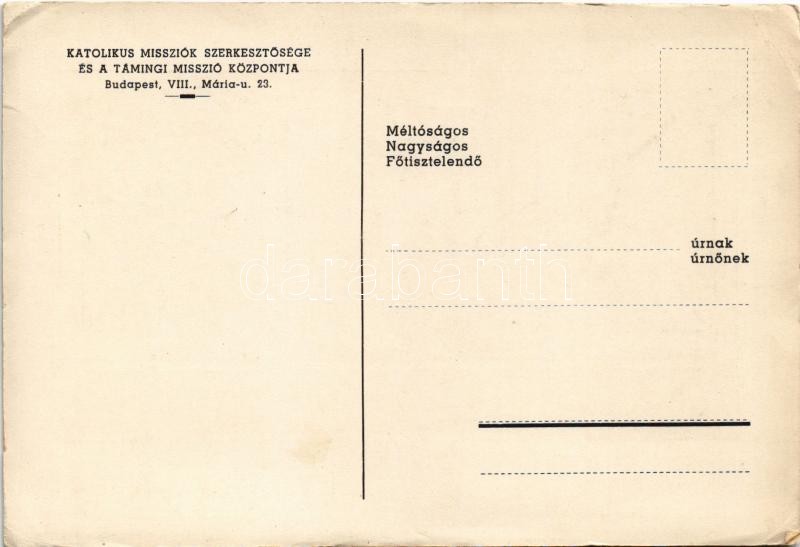 Neveljünk bennszülött papokat! Imával, adománnyal segítsük a hitterjes... https://www.darabanth.com/en/410-Online-auction/410.0/Postcards/Religion~1500068/Neveljunk-bennszulott-papokat-Imaval-adomannyal-segitsuk-a-hitterjesztoket-Mentsuk-meg-a~II2468452
