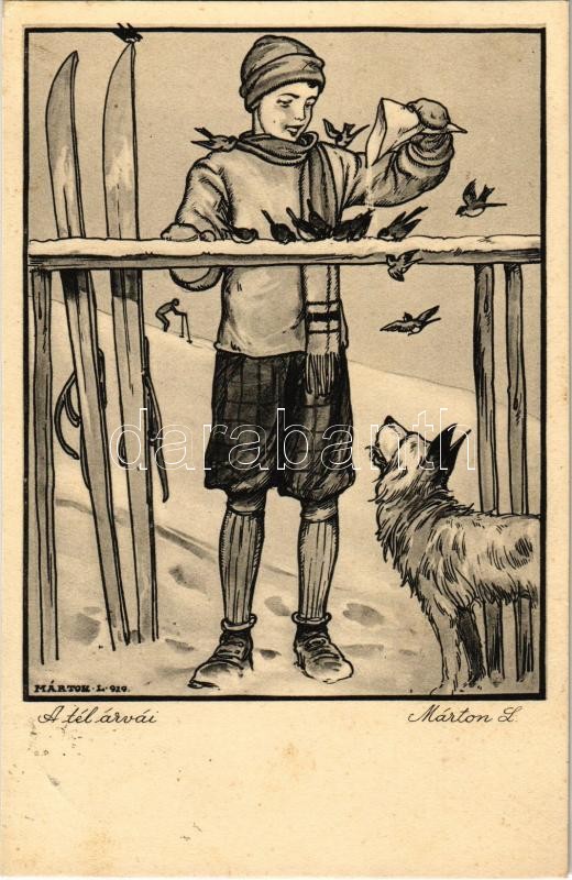 1931 A tél árvái. A Márton Műterem kiadása / Hungarian boy scout art postcard, winter s: Márton L. (EK)