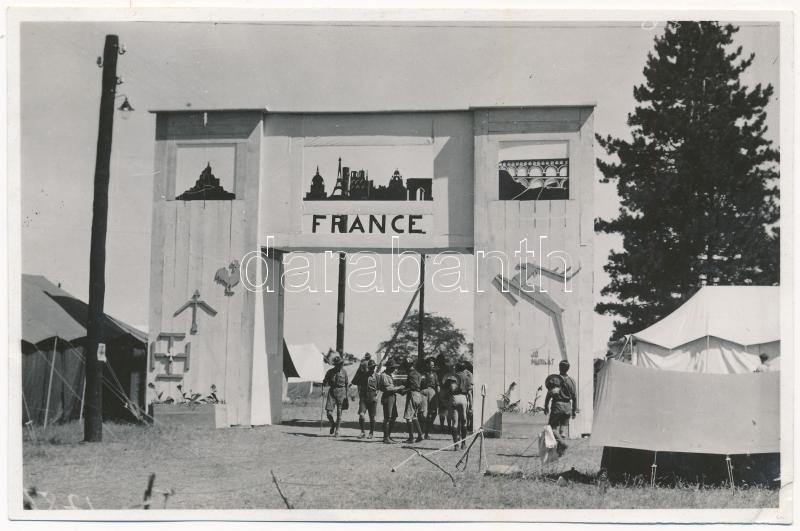 Description: 1933 Gödöllő, Cserkész Világ Jamboree, Francia tábor kapuja / IV. Scout Jamboree, "France" gate of the French camp. photo (non PC) (EK) (14,5 x 9,5 cm)
