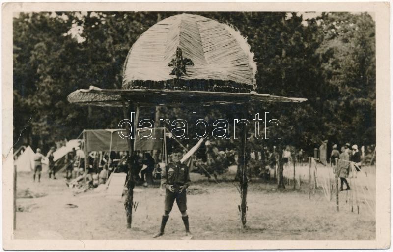 1933 Gödöllő, Cserkész Világ Jamboree, vesszőkből épített cserkész kalap / World Scout Jamboree, scout hat built of twigs at the camp