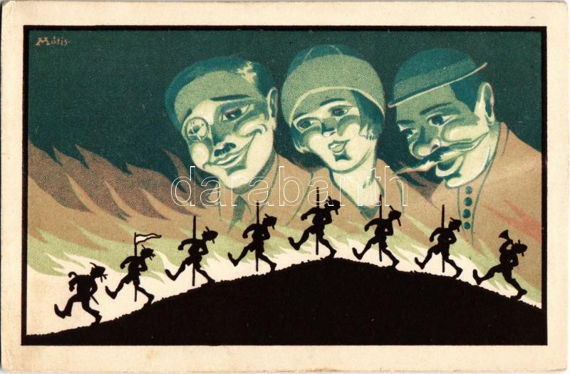 Sziluettes cserkész művészlap / Hungarian silhouette scout art postcard. litho s: Mátis (EK)