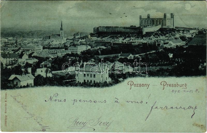 1898 (Vorläufer) Pozsony, Pressburg, Bratislava; látkép, vár, ortodox ...