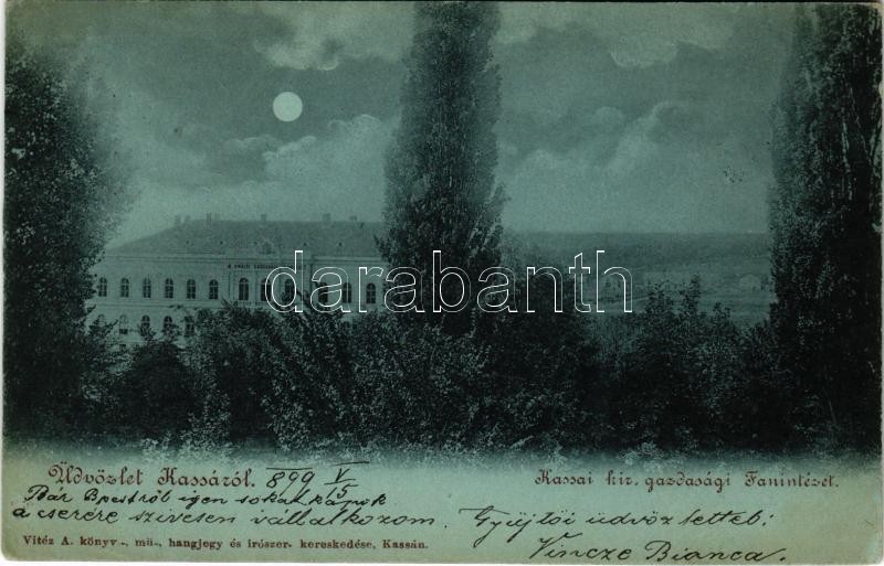 1899 (Vorläufer) Kassa, Kosice; M. kir. gazdasági tanintézet. Vitéz A. kiadása / economic school (EB)