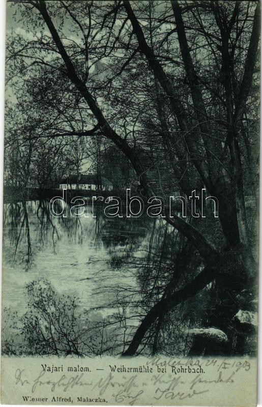 1903 Nádasfő, Rárbok, Rohrbach, Rohozník; Vajari malom, tómalom. Wiesner Alfred kiadása / Weihermühle bei Rohrbach / watermill (EK)