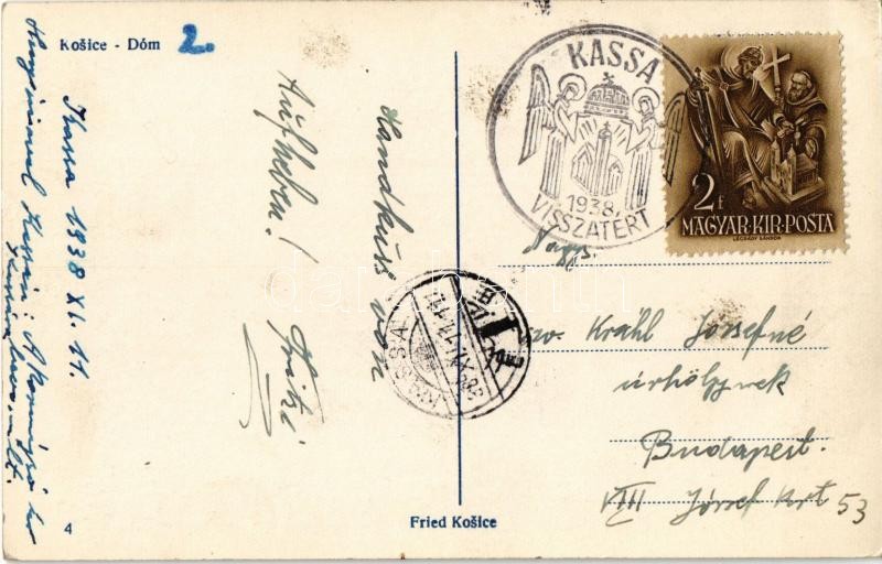 1938 Kassa, Kosice; Dóm / székesegyház / cathedral + "1938 Kassa visszatért" So. Stpl. (EK)