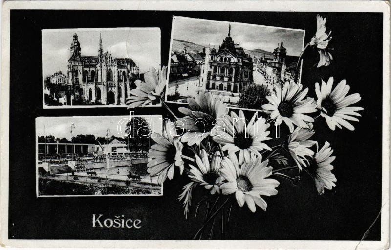 1938 Kassa, Kosice; székesegyház, színház, strand / cathedral, theatre, swimming pool + "1938 Kassa visszatért" So. Stpl. (EB)