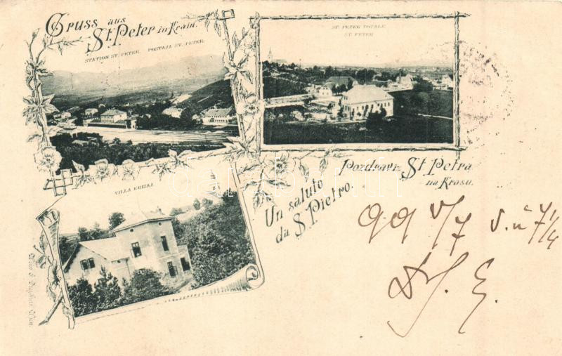 1899 Sveti Petar na Krasu, St Peter in Krain; Railway station, Villa Krizaj, floral (Rb)