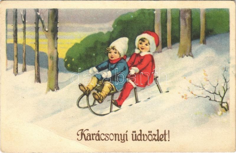 Karácsonyi üdvözlet / Christmas greeting art postcard, winter sport, sled. L&P 8838. (EB)