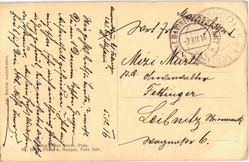 1916 Osztrák-Magyar Haditengerészet csatahajójának fedélzeti légvédelmi ágyúi / K.u.K. Kriegsmarine Fliegerabwehr / WWI Austro-Hungarian Navy, battleship's anti-aircraft guns, air defense cannons. Phot. A. Hauger 1916 Nr. 1007. + "K.u.K. KRIEGSMARINE KOMMANDO" (EK)