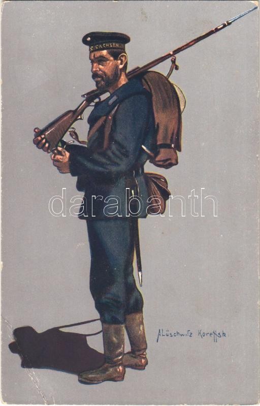 Matrose der Kaiserliche D. Marine 1914-1915 / WWI Imperial German Navy art postcard, mariner of the SMS Sachsen battleship s: Lüschwitz-Koreffski (EB)