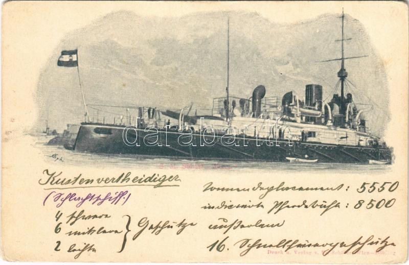 Description: SM Schiff "Wien" (Küstenverteidiger) K.u.K. Kriegsmarine / SMS Wien az Osztrák-Magyar Haditengerészet Monarch-osztályú partvédő csatahajója / Austro-Hungarian Navy SMS Wien coastal defense ship (EK)