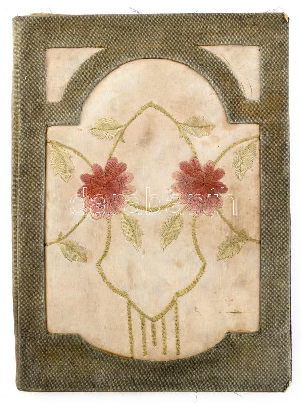 1900 körül Szecessziós hímzett mappa, viseletes állapotban, 36,5x27cm