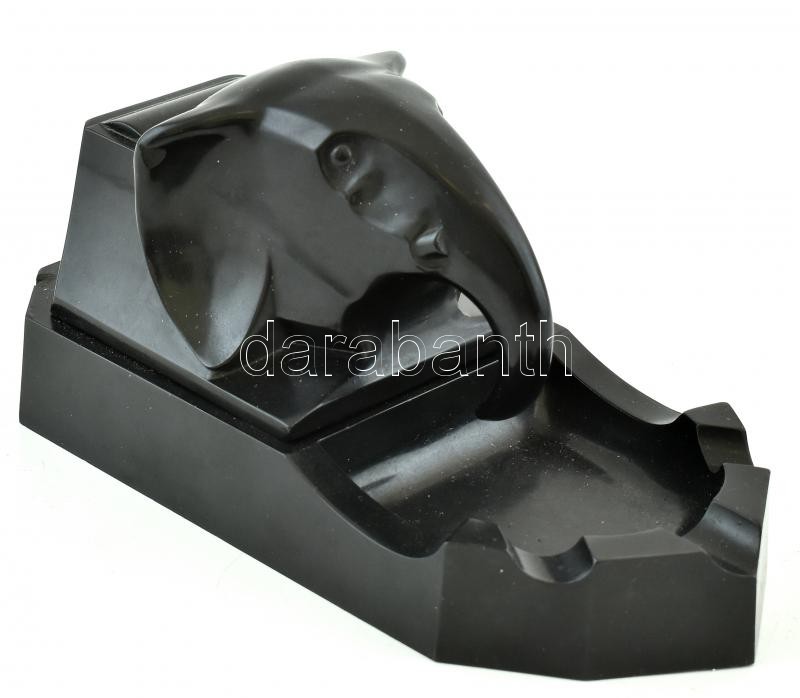 Art deco elefántfejes cigarettakínáló és hamutál, bakelit, jelzett: Gu...