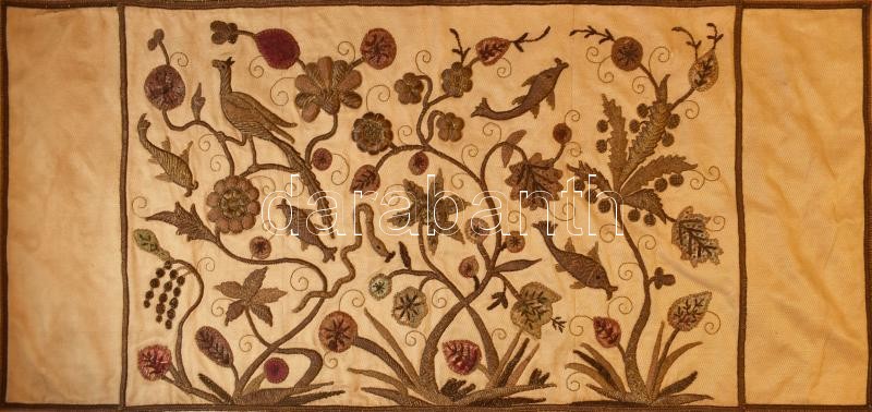 T. Bodrog Erzsébet (1934-): Fali szőttes. Vászon, fémszálas hímzés. Há...