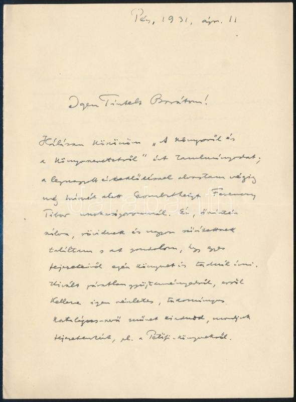 1931 Tolnai Vilmos (1870-1937) nyelvész, irodalomtörténész, egyetemi t... https://www.darabanth.com/en/411-Online-auction/411.0/Art-and-other-collectibles/Historical-documents-manuscripts~505020/1931-Tolnai-Vilmos-1870-1937-nyelvesz-irodalomtortenesz-egyetemi-tanar-autograf-levele-egy~II2562761
