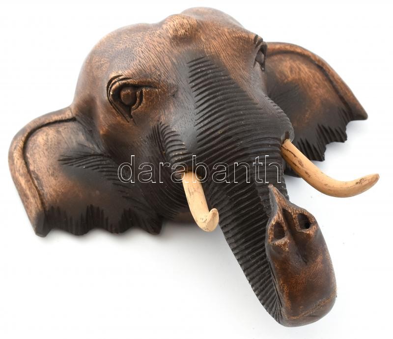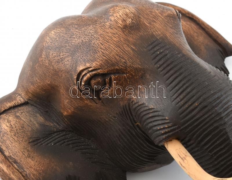 Elefánt fej. Faragott fa fali dísz. Felakasztható 26x27 cm
