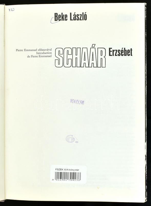 Beke László : Schaár Erzsébet. Bp., 1973., Corvina. Kiadói egészvászon kötésben, kiadói kissé szakadt, kopott papír védőborítóval, volt könyvtári példány.