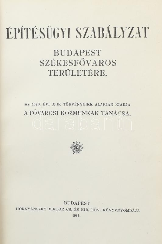 Építésügyi szabályzat Budapest székesfőváros területére. Az 1870. évi ... https://www.darabanth.com/en/411-Online-auction/411.0/Books/Books-Travelling-Local-History~1500004/Epitesugyi-szabalyzat-Budapest-szekesfovaros-teruletere-Az-1870-evi-X-ik-torvenycikk-~II2561865