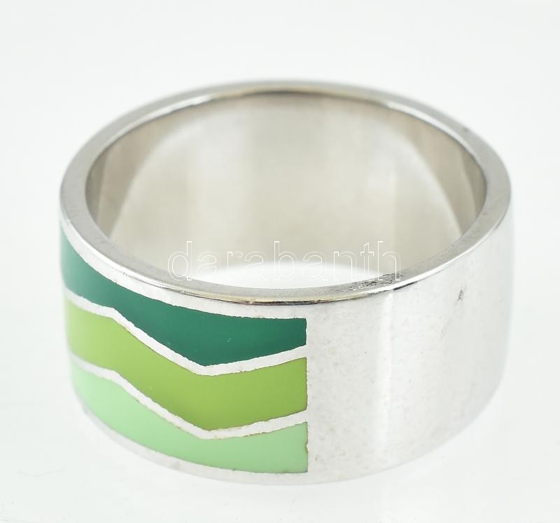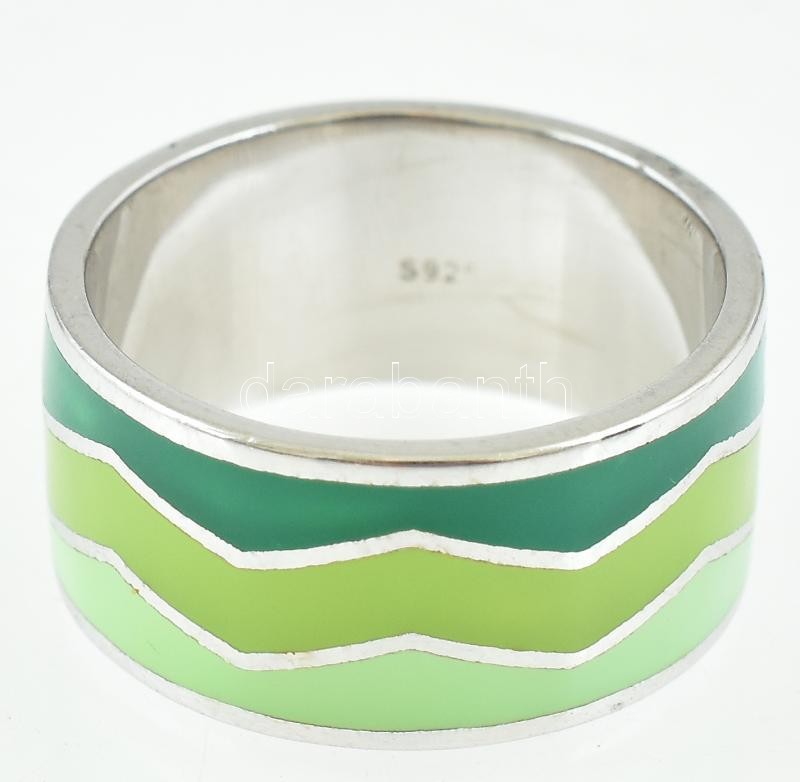 Ezüst(Ag) zománcozott gyűrű, jelzett, méret: 59, bruttó: 6,96 g