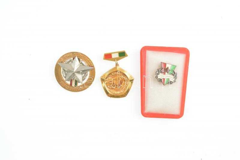 ~1970. "A Szövetkezeti Ipar Kiváló Dolgozója" aranyozott, ezüstözött, zománcozott kitüntető jelvény + "Kiváló Társadalmi Munkás" aranyozott fém kitüntető jelvény + "Törzsgárda" műgyantás fém jelvény eredeti tokban T:1-2