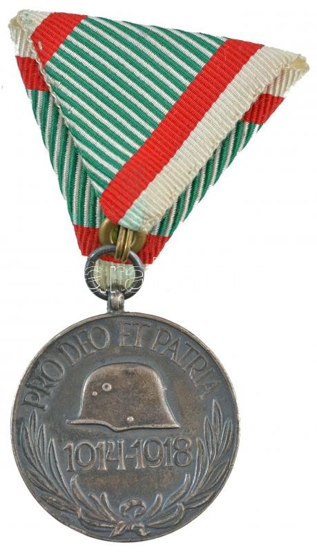 Description: 1929. "Magyar Háborús Emlékérem kardokkal, sisakkal" ezüstözött bronz kitüntetés modern mellszalagon, "BRONZ" fémjel a hátlapon T:2