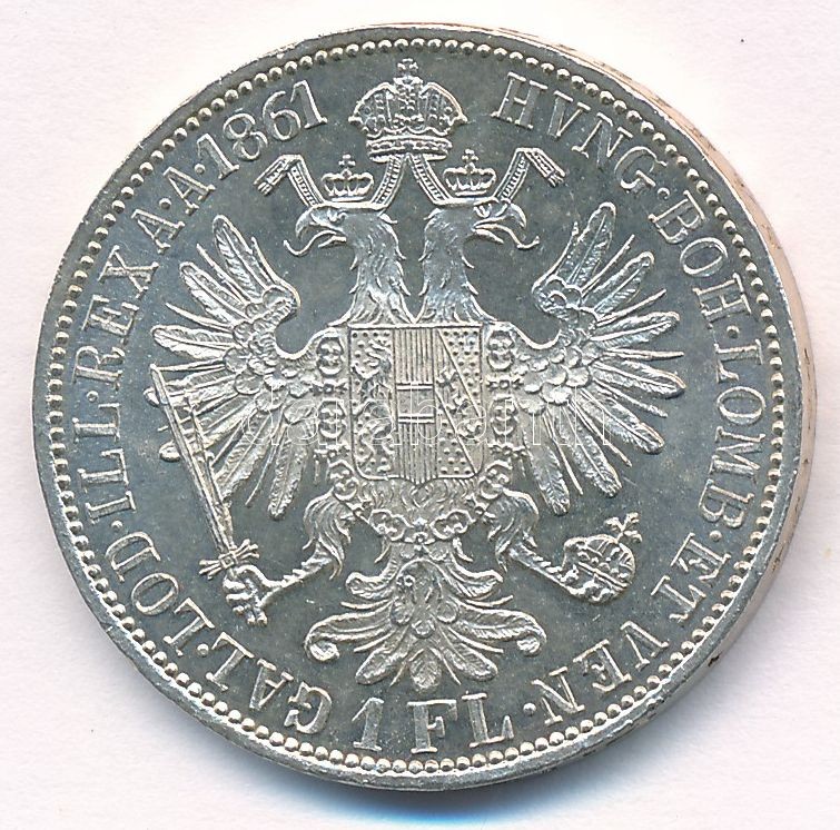 Ausztria 1861A 1Fl Ag "Ferenc József" T:1,1- kis patina, kis ph, karco... https://www.darabanth.com/en/411-Online-auction/411.0/Numismatics/Worldwide-silver-and-metal-coins~2000022/Ausztria-1861A-1Fl-Ag-Ferenc-Jozsef-T1-1-kis-patina-kis-ph-karcok-Austria-1861A-1-Florin-Ag-~II2562185