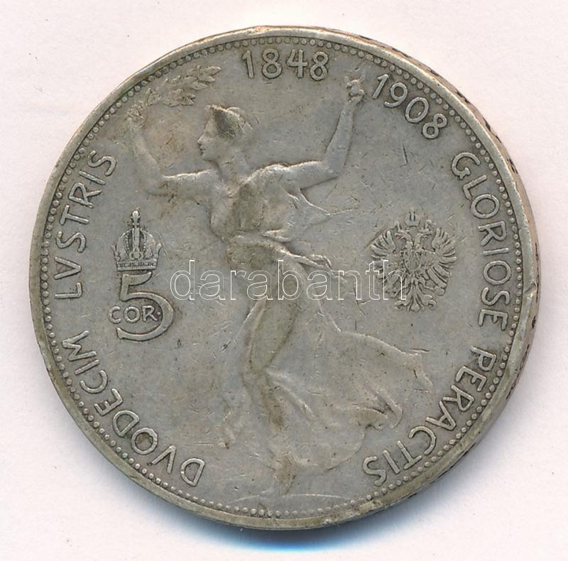 https://www.darabanth.com/en/411-Online-auction/411.0/Numismatics/Worldwide-silver-and-metal-coins~2000022/Ausztria-1908-5K-Ag-Ferenc-Jozsef-Jubileum-T3-patina-Austria-1908-5-Corona-Ag-Franz-Joseph-~II2552879