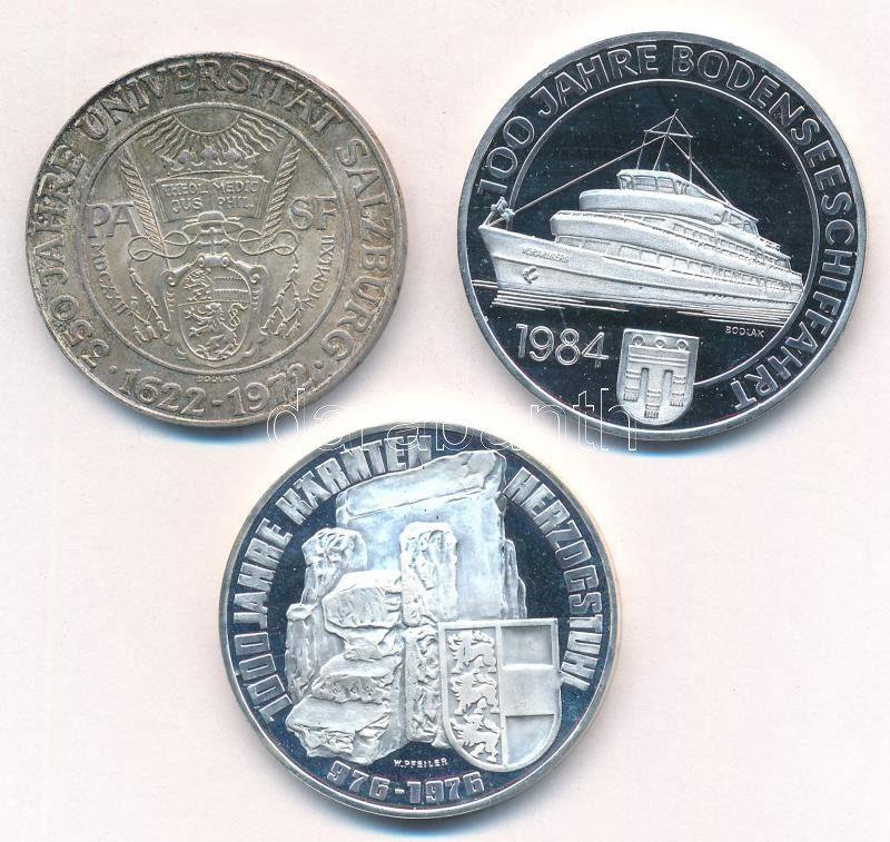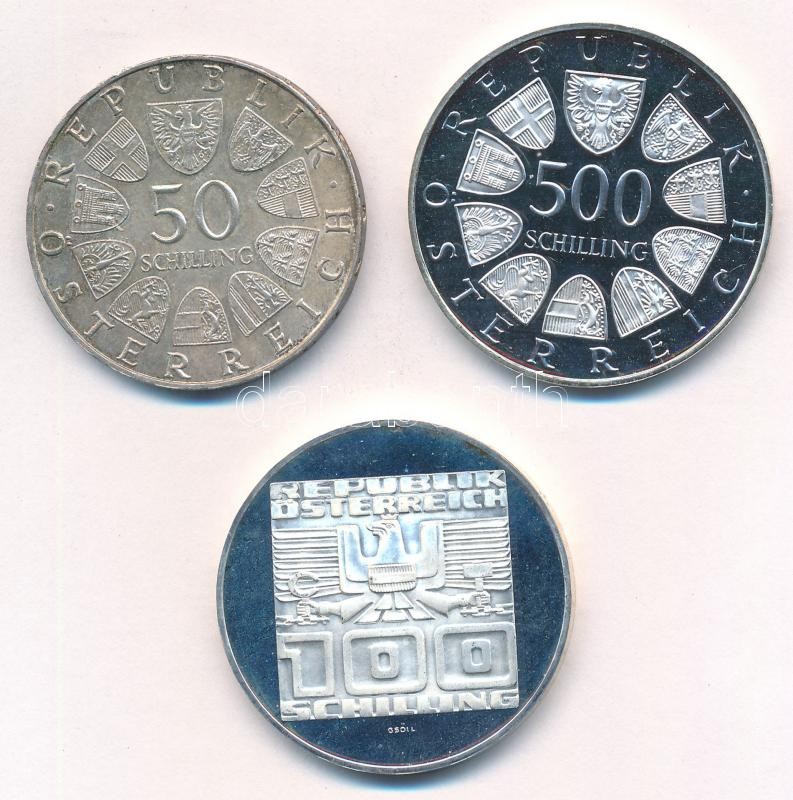 Ausztria 1972. 50Sch Ag "350 éves a Salzburgi Egyetem" + 1976. 100Sch Ag "Karintia 1000 éves" + 1984. 500Sch Ag "100 éves a hajóközlekedés a Bodeni-tavon" T:PP (100 és 500Sch),2