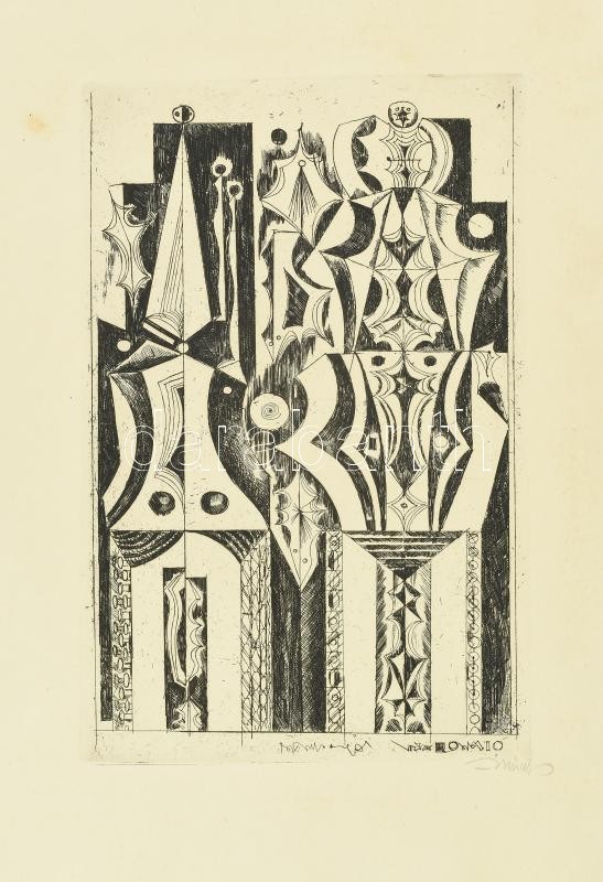 Hincz Gyula (1904-1986): Formák (cím nélkül). Rézkarc, papír, jelzett,...
