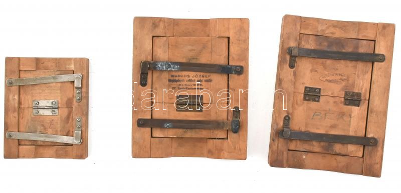 cca 1910 3 db régi fotómásoló keret fából 15x18 cm, 10x12 cm